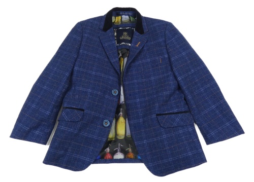 Tmavomodro-hnědé kostkované společenské sako Cavani
