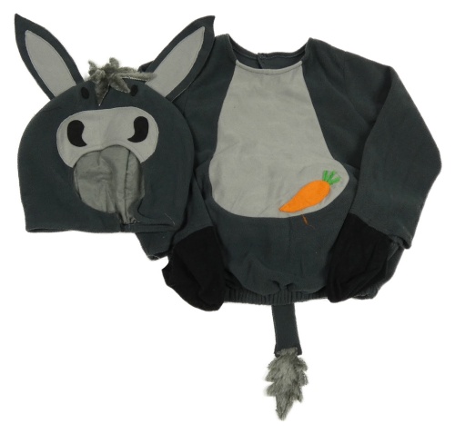 Kostým - 2set - Šedá fleecová vesta s mrkví a ocasem + čepice - oslík