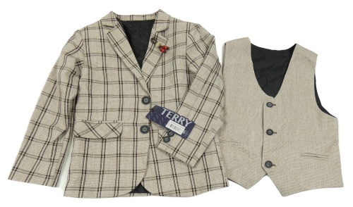 Nové - 2set - Hnědé kostkované slavnostní sako + vesta