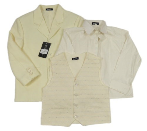 Nové - 3 set - smetanové společenské sako + vzorovaná vesta + smetanová košile