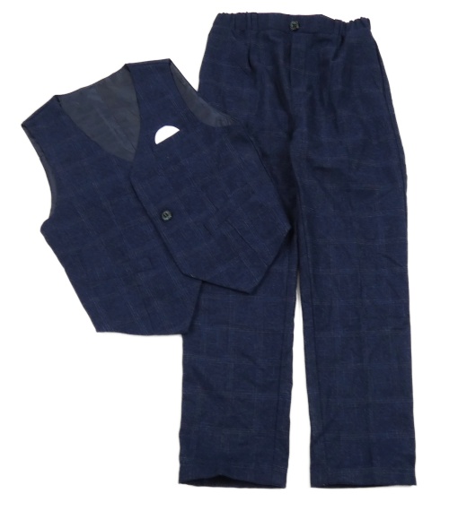 2Set - Tmavomodré kostkované společenské kalhoty + vesta