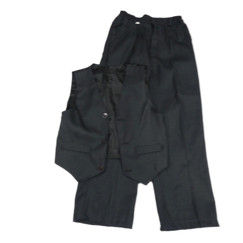 2Set - Tmavošedo-černá pruhovaná slavnostní vesta + kalhoty