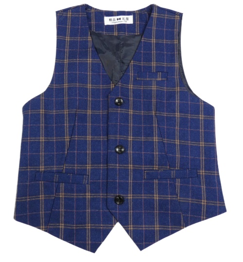 Tmavomodro-okrová kostkovaná slavnostní vesta
