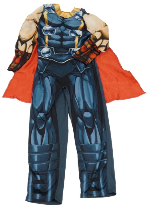 Kostým - tmavomodrý vzorovaný overal s červeným pláštěm marvel