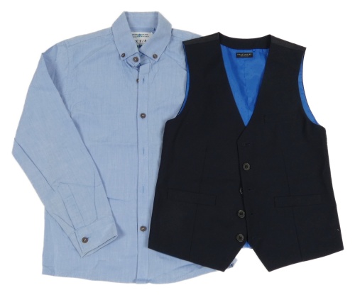 2 set - světlemodrá košile + tmavomodrá společenská vesta Next