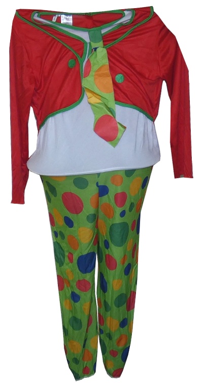 Kostým - Červeno-bílo-zelený overal s puntíkatými kalhoty a kravatou - klaun
