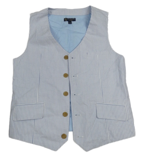 Nové - Světlemodro-bílá proužkovaná společenská vesta Howick