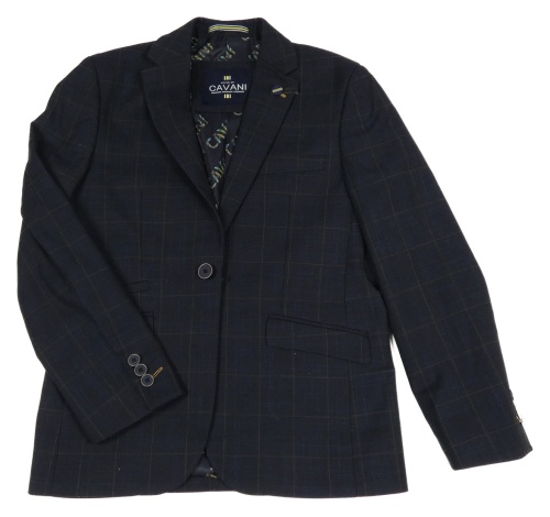 Tmavomodro-hnědo-modré kostkované vzorované sako CAVANI