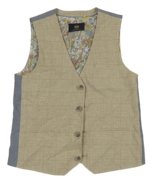 Béžovo-modrá společenská lněná vesta Next