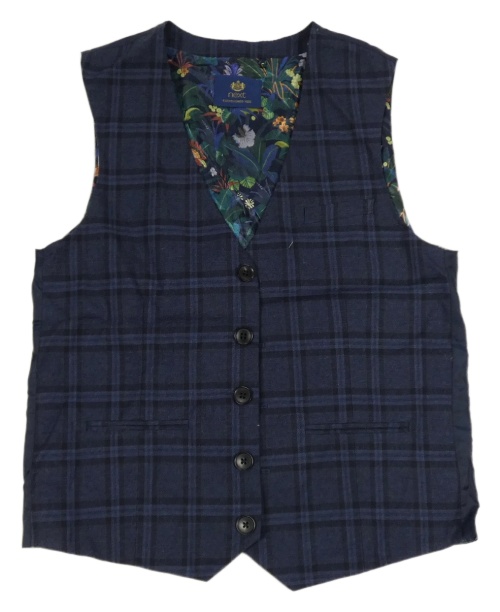 Tmavomodrá kostkovaná podšitá společenská vesta Next