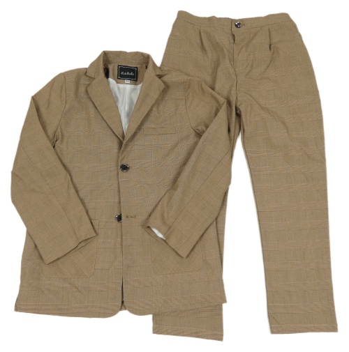 2set - Hnědé kostkované slavnostní sako + kalhoty
