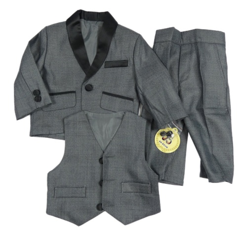 Nový - 3Set - Šedo-černé melírované sako + šedá vesta + kalhoty