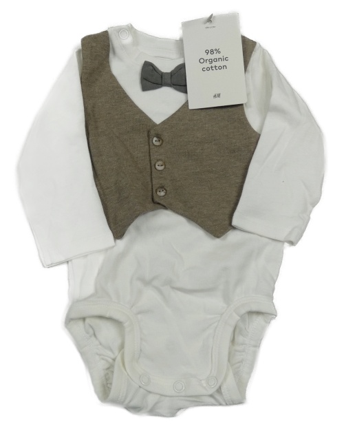 Nové - bílé body s našitou hnědou vestou a motýlkem H&M