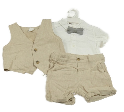 Nové - 3 set - světlebéžová lněná vesta + bílá košile + kraťasy H&M