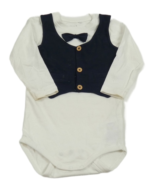 Bílé slavnostní body s tmavomodrou vestou a motýlkem name it.