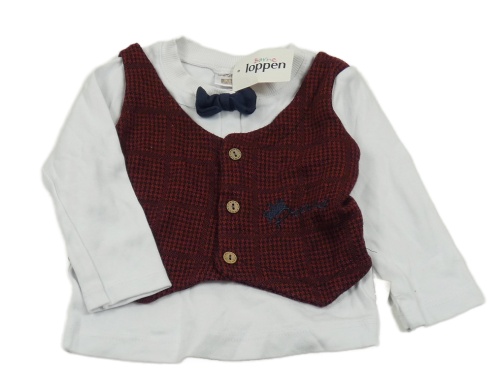 Nové - bílé triko s červeno-černou našitou vestou a motýlkem