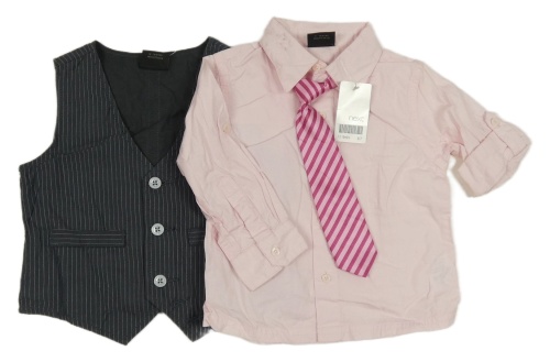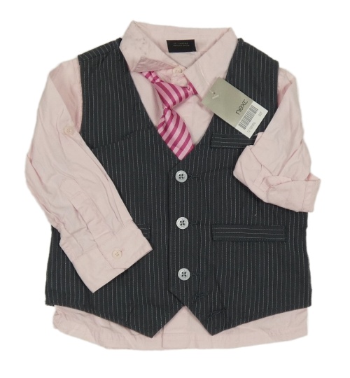 • Nové - 3set - Růžová košile + pruhovaná kravata + antracitová pruhovaná slavnostní vesta Next