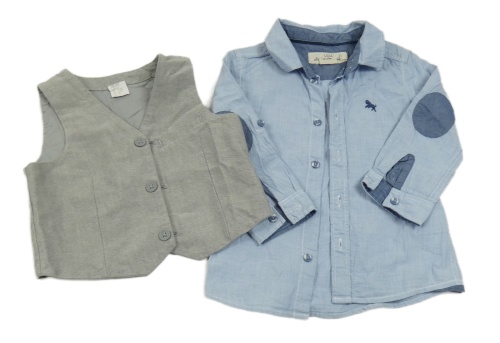 2set - Modrá košile + šedá plátěná slavnostní vesta H&M