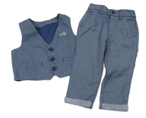 2 set - tmavomodrá vzorovaná společenská vesta + společenské kalhoty Rebel