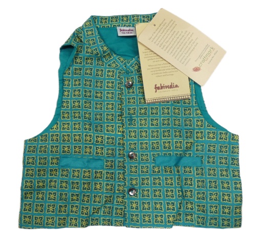 Nové - modrozelená vzorovaná slavnostní vesta