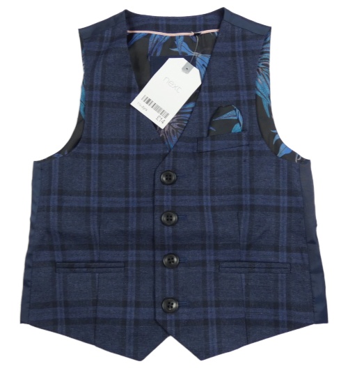 Nová - tmavomodrá kostkovaná melírovaná slavnostní vesta Next
