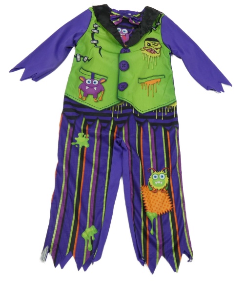 Kostým - Zeleno-fialový overal s příšerkami a motýlkem