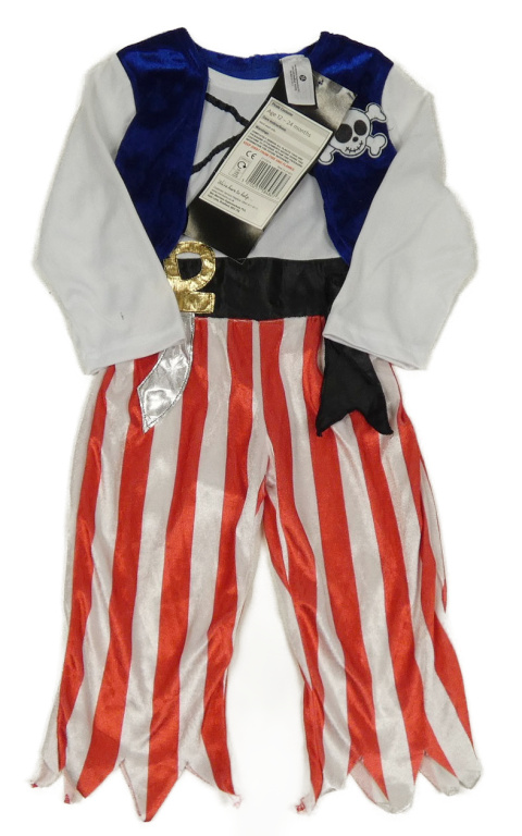 Nové - Kostým - Bílo-tmavomodro-červený overal s lebkou - pirát