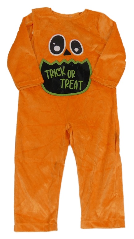 Kostým - oranžový plyšový overal s očima a kapsou s nápisem George