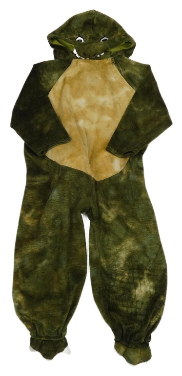 Kostým - Tmavozeleno-béžová plyšová kombinéza s kapucí - Dino