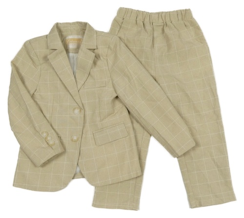 2set - Béžovo-bílé kostkované slavnostní sako + kalhoty