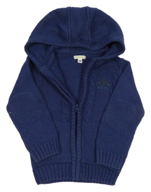 Tmavomodrý vzorovaný propínací vlněný svetr s kapucí Vertbaudet