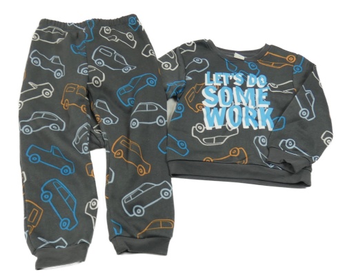 2Set - Tmavošedá teplá mikina s nápisy a auty + tepláky