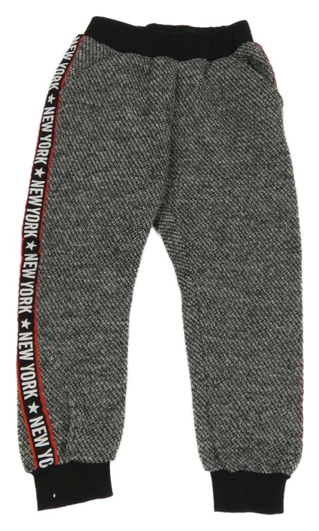 Černo-šedé vzorované pletené kalhoty s nápisy
