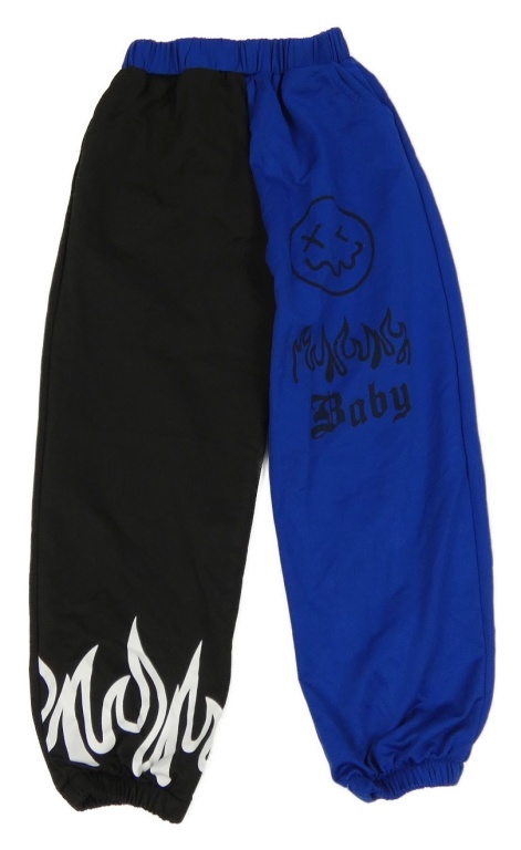 Černo-tmavomodré tepláky s ohněm a smajlíkem Shein