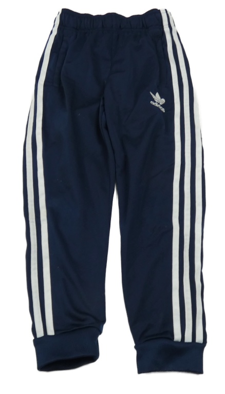 Tmavomdoro-bílé sportovní tepláky s pruhy a logem Adidas