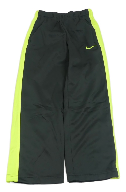 Tmavošedé sportovní tepláky se zeleným neonovým pruhem a logem Nike