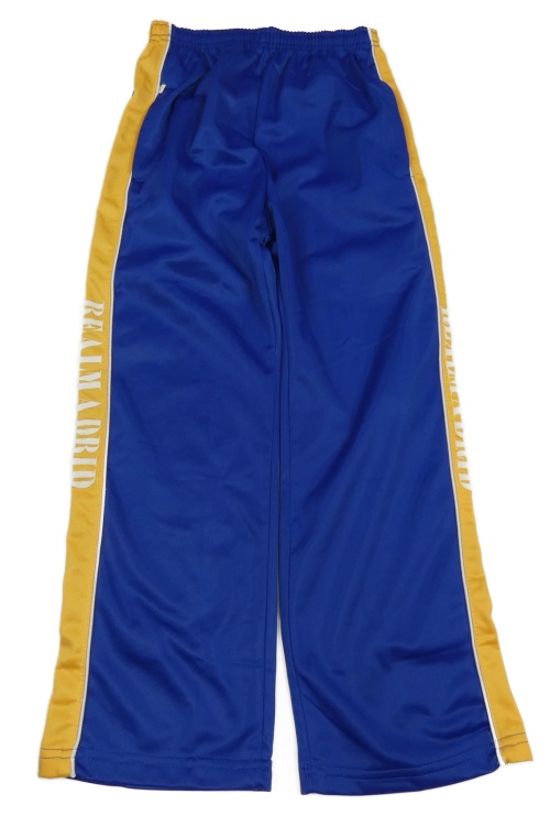 Safírovo-hořčicové sportovní tepláky s nápisy a pruhy