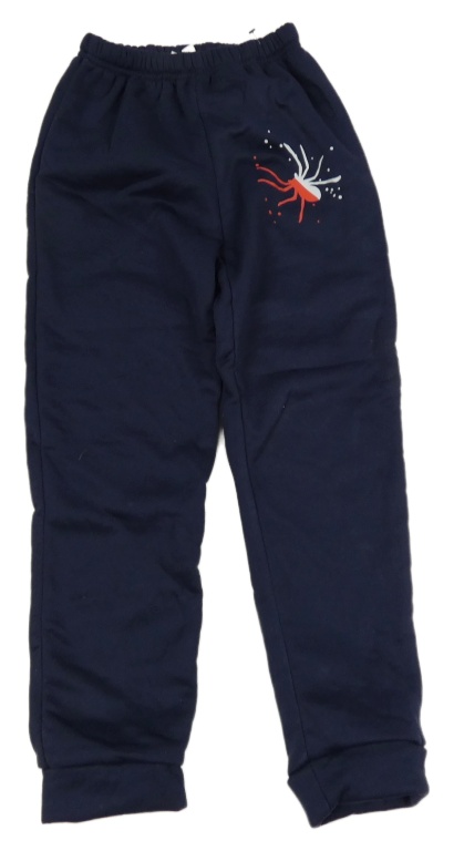 Tmavomodré zateplené tepláky s pavoukem