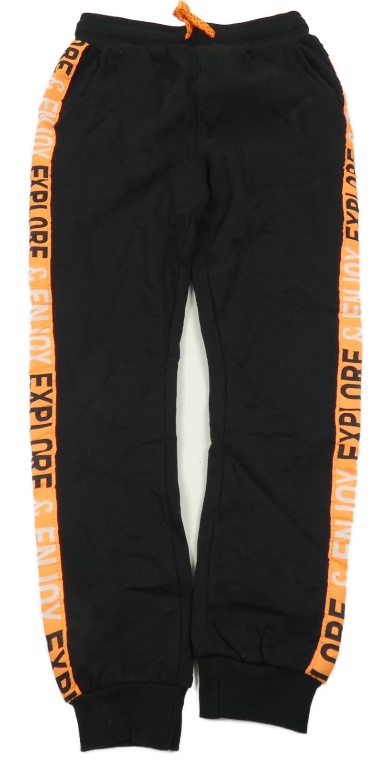 Černé tepláky s křiklavě oranžovým pruhem s nápisy Y.F.K.