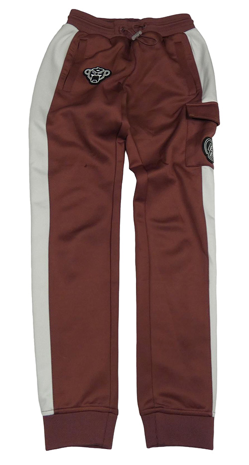 Vínovo-bílé sportovní tepláky s nášivkou a kapsou