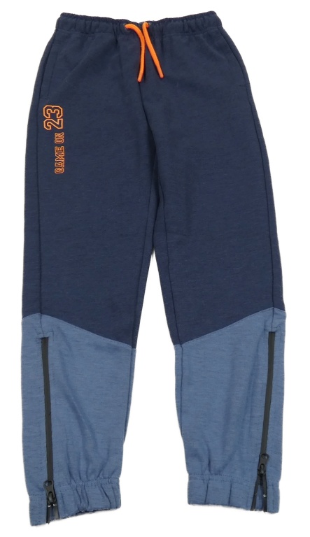 Tmavomodro-modré melírované tepláky s číslem a nápisem Vertbaudet