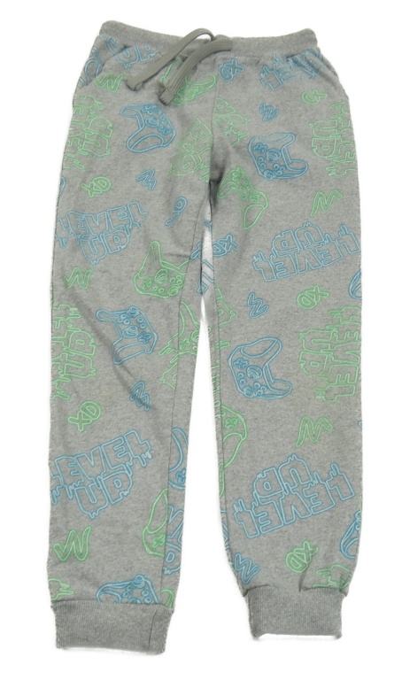 Šedé tepláky s modrými a zelenými nápisy Sinsay