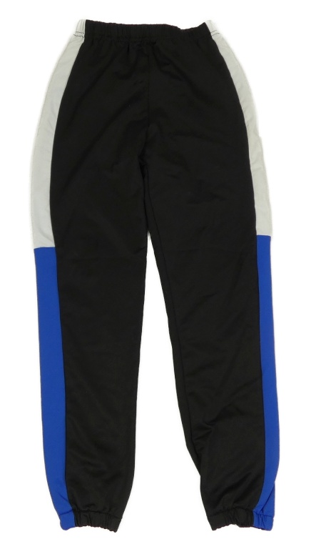 Černé sportovní tepláky s modrým a bílým pruhem