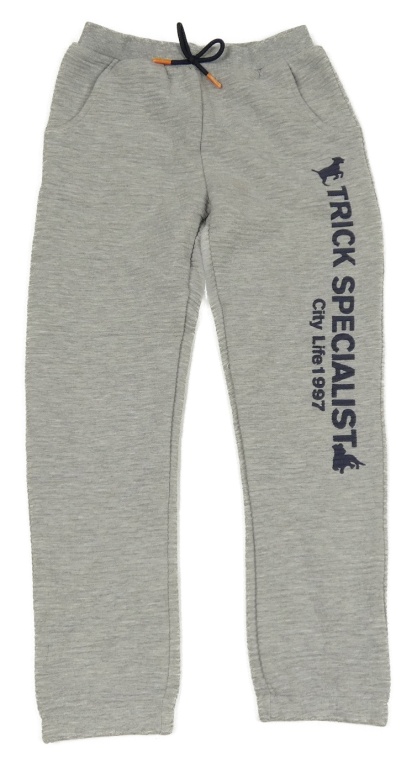 Šedé žebrované tepláky s nápisem Kids