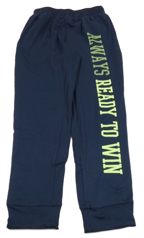 Tmavomodré sportovní tepláky s nápisem Destination