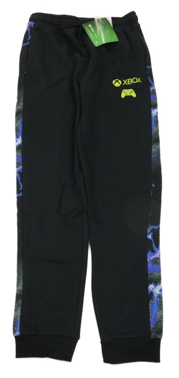 Nové - černé tepláky s fialovým pruhem a nápisem - X-Box Tu