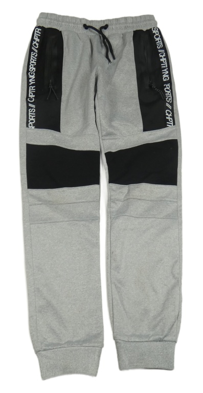 Šedo-černé sportovní tepláky s nápisy Chapter Young