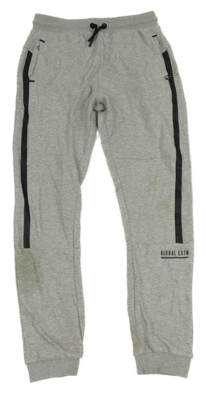 Šedé melírované tepláky s nápisem a pruhem George