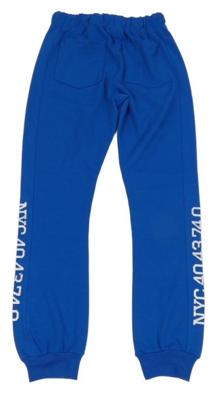 Modré tepláky s nápisem a čísly Ergeenomixx