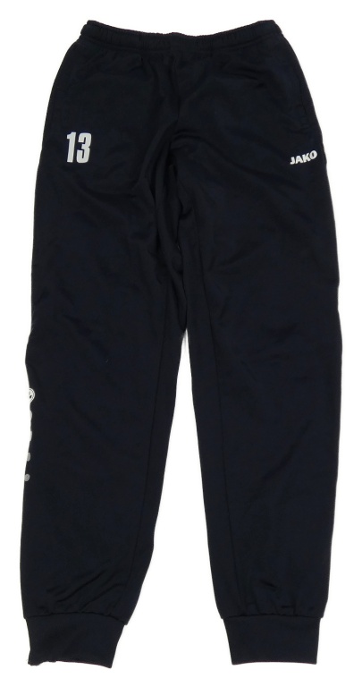 Tmavomodro-bílé sportovní tepláky s číslem a logem Jako